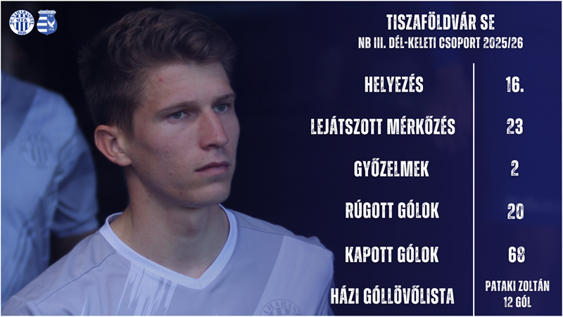 Az NB III Dél-Keleti csoport huszonnegyedik fordulójában a Tiszaföldvárt látja vendégül első számú felnőtt...