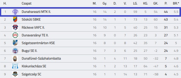Ezzel a mutatóval az első helyen zártunk a tabellán.