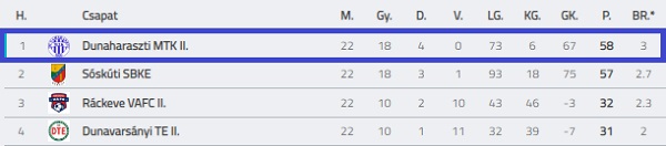 A 2021-22-es idényben második számú felnőtt csapatunk a Pest megyei IV. osztályú bajnokság Dél-Nyugati csoportjában versenyzett.