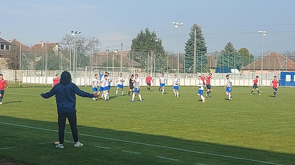 Jól kezdtek a mieink, hiszen már a 4. percben vezetéshez jutottunk: egy hazapasszolt labdát Farkas M. kapus vett át rosszul, az erőszakos Tóth Gy. pedig megszerezte tőle a játékszert és Simon elé tálalt. A berobbanó Simon 13 méterről, védője szorításában helyezett a bal alsó sarokba. 1-0!