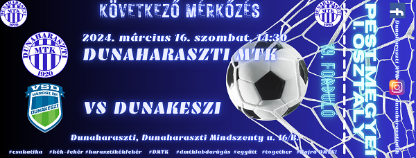 A Pest Vármegyei I. osztályú bajnokság tizenkilencedik fordulójában a Dunakeszit látja vendégül a DMTK,...