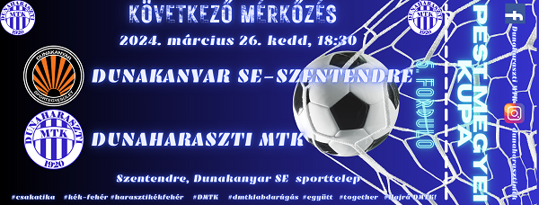 A Pest Vármegyei Kupa ötödik fordulójában a Dunakanyar SE-Szentendre vendégeként, kedden 18:30-kor lép...