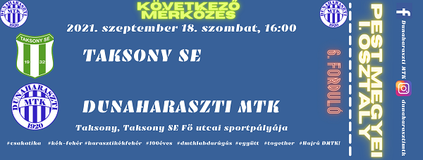 A Pest megyei I. osztály hatodik fordulójában a Taksony otthonában lép pályára első számú felnőtt...