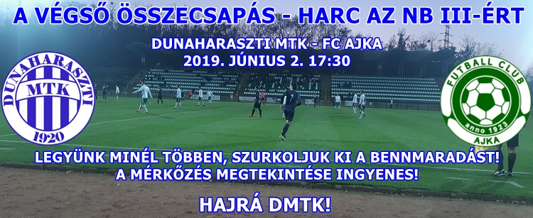 Az utolsó forduló jön az NB III-ban és a DMTK a már bajnok Ajkát látja vendégül.
